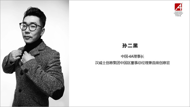 理事长孙二黑表示,作为一个在广告行业里工作了二十几年的老兵,此刻感受到了从未有过的紧张和兴奋。紧张是因为重任在肩,中国·4A 代表着中国广告业的巅峰,在专业上是中国最好的一个标杆,在日常工作上是大家看齐的一个标准。紧张之余也有跃跃欲试的兴奋,广告行业和中国·4A 中有很多有能力、有情怀、有格局、有担当的人,非常荣幸可以和大家团聚在中国·4A 的平台上。在今后的工作中,作为理事长一定会跟大家多交流、多沟通,把大家的所思所想,甚至担心和焦虑都记在心里,用实际行动服务好大家。