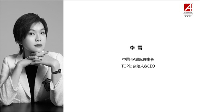 中国·4A联席理事长滕丽华女士表示任职期间见证了广告行业的壮大与发展,对于未来几届的工作,也提出了三点期望:1、希望各位会员可以更紧密的交流;2、希望能够继续推动多元文化和包容的价值观;3、希希望更多的国际4A公司参与到中国·4A的大家庭中,多做贡献。