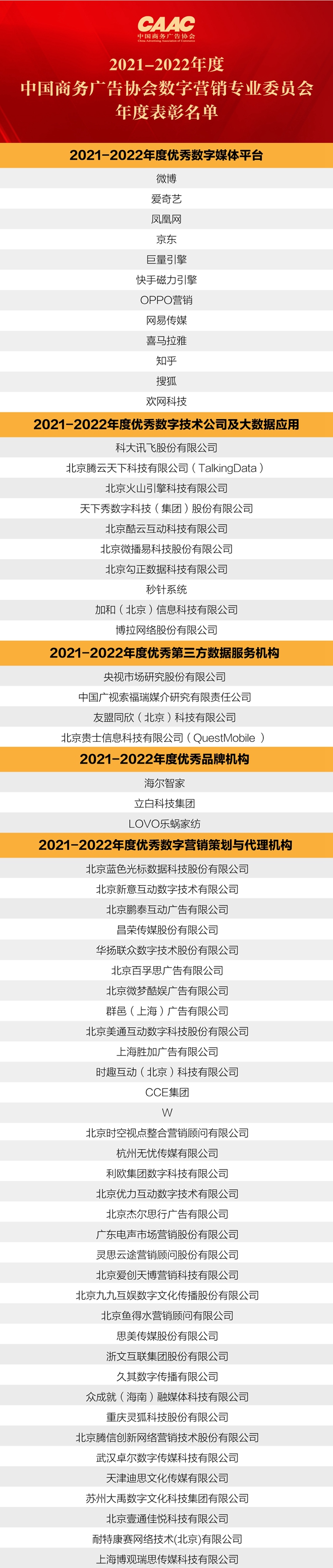 中国商务广告协会数字营销专业委员会优秀会员单位及优秀个人年度表彰